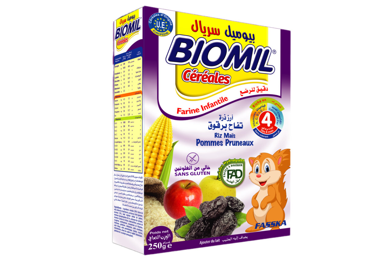 الوسوم: 250, G 250غ 4, Mais, Mois 4, Pommes, Pruneaux ارز, أشهر biomil Céréales Riz, برقوق بيوميل سريال, تفاح, درة