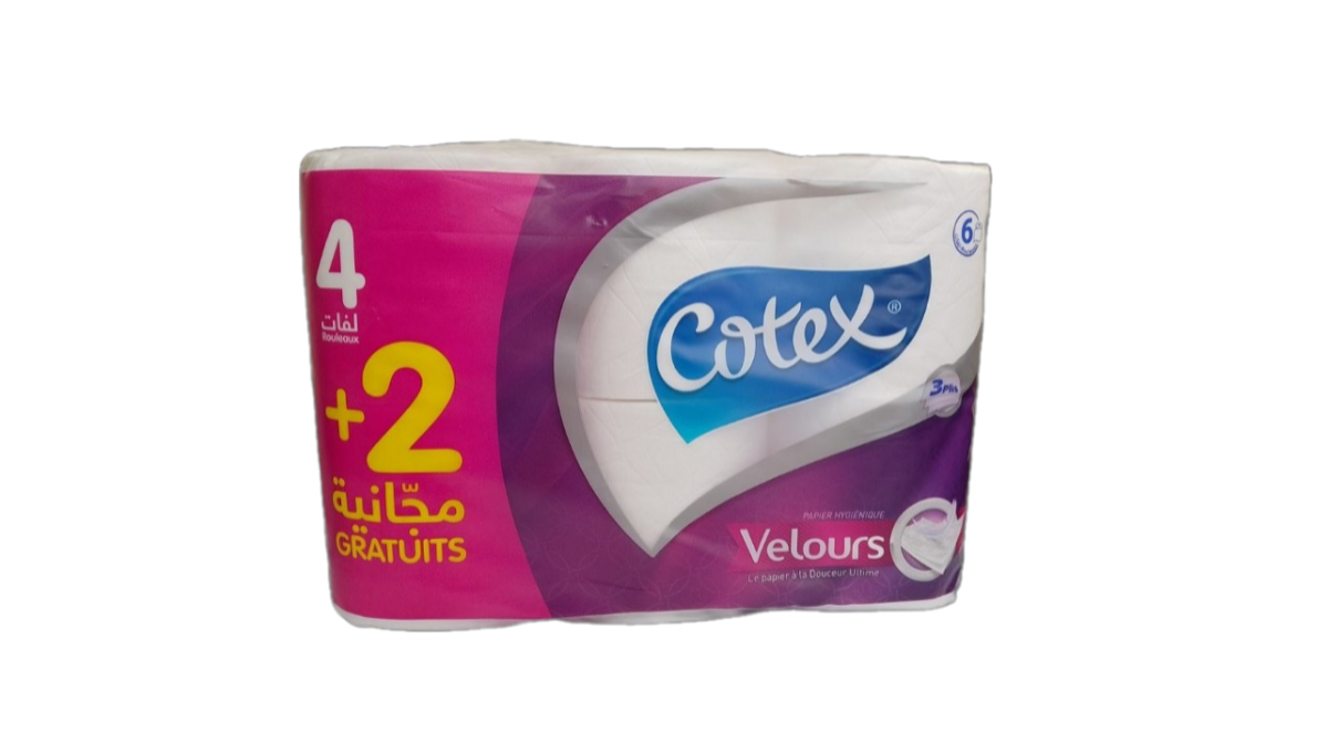 Cotex Velours Papier Hygienique 4 Rouleaux +2 Gratuits