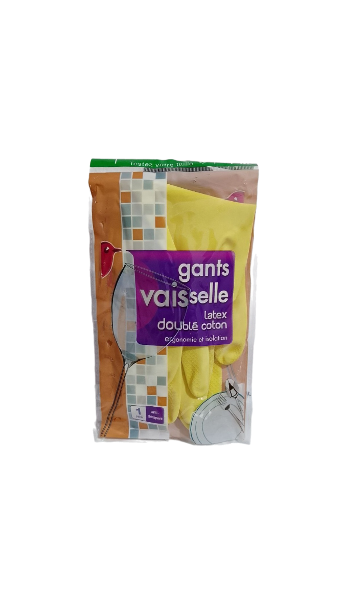 Gants vaisselle latex doublé coton