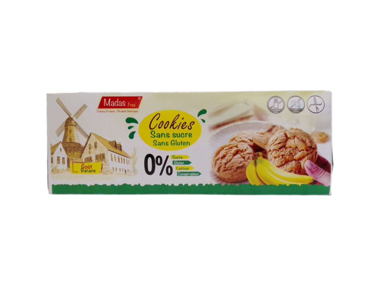 الوسوم: 120, banane Madas, free حبيبات, G 120, شوكولاطة ذوق, غ Cookies gout, موز كوكيز